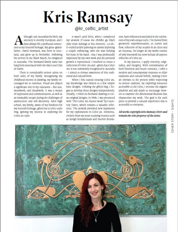 Kris Ramsay has established a prominent presence within the Celtic art community. Alongside Peter Grimes, together they co-manage the Facebook group - Celtic Artists of Australia.